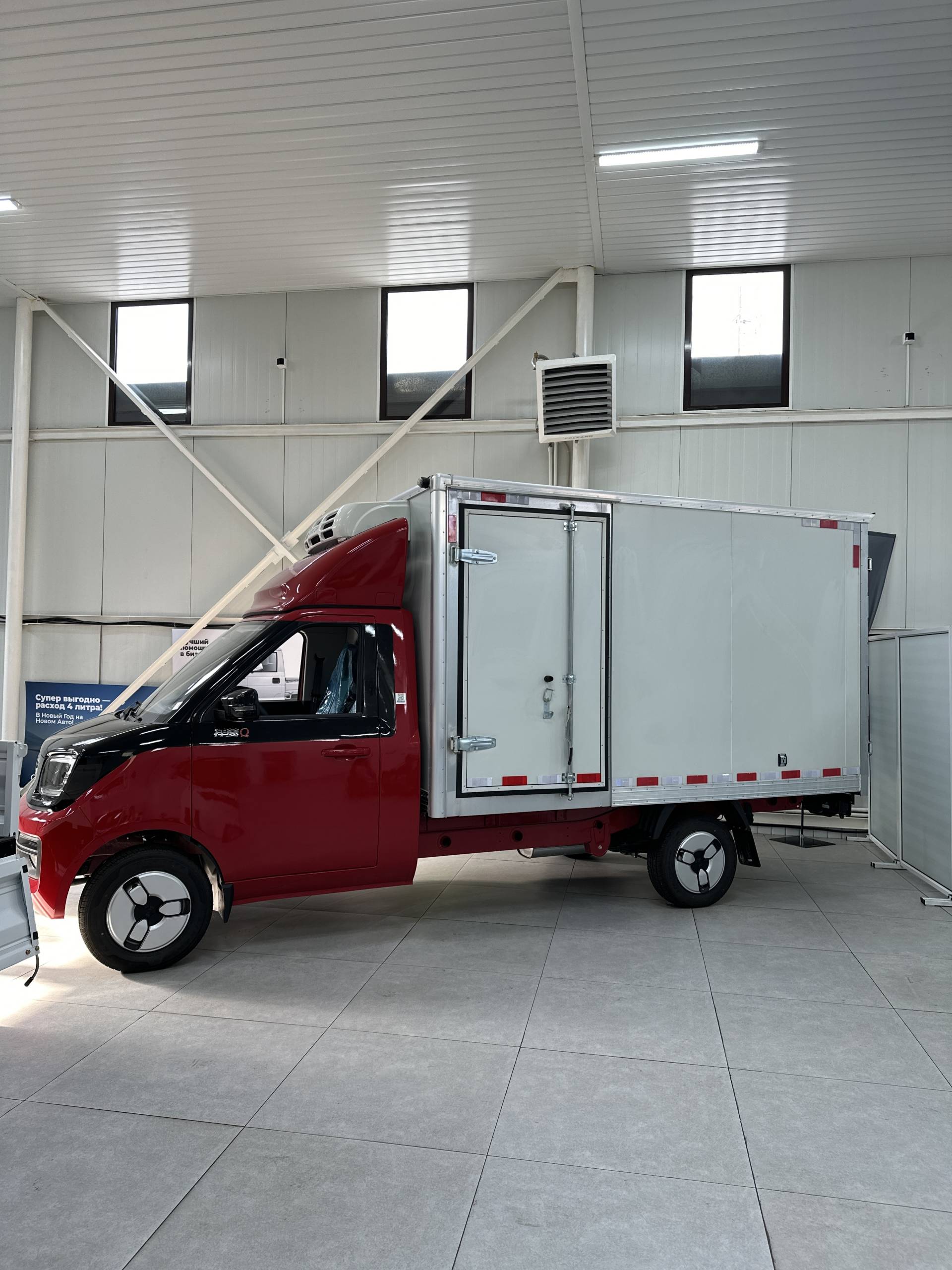 Полурефрижераторный кузов позволяет сохранять необходимый температурный режим при перевозке охлаждённой продукции. Благодаря компактным габаритам и лёгкому управлению грузовик уверенно работает в условиях плотного городского трафика и на коротких междугородних маршрутах.